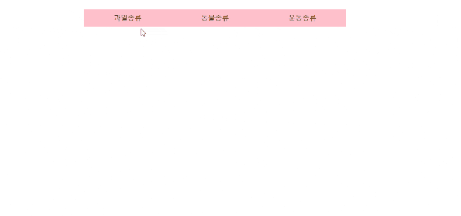 메뉴에도 transition을 사용하여 애니메이션 효과를 줄 수 있는다. 다만 style에 display:none ,display:block 를 사용하면 태그가 존재해야만 효과가 적용이 되는 transition의 특성상 태그를 삭제하는 개념인 display:none의 경우 애니메이션 효과가 적용되지 않는다. 애니메이션 효과를 적용 시켜 주기 위해선 아래와 같이 transition: 1s ; opacity:0 과 opacity:1을 사용하여 애니메이션 효과를 적용할 수 있다. 하지만 배경색이 있을경우 transition: 1s ; opacity:0 과 opacity:1을 사용하면 아래 출력물과 같이 부자연스러울 수 있다.