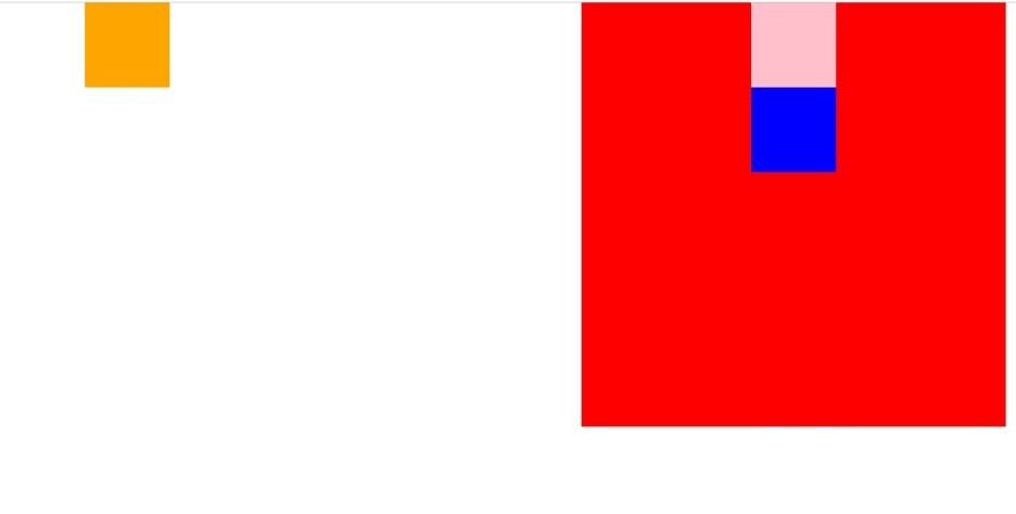 1번째 태그에 position:relative 를 적용하고 top:100px를 적용하여 margin-top:100px와 같은 효과를 주었고 2번째 태그와 3번째 태그도 아래로 이동하기 위해 2번째 태그에 margin-top:100px를 적용하였다. 200px를 적용하지 않는 이유는 2번째 태그가1번째 태그를 무시 하지 않고 원래 자리에 위치하고 있기 때문이다.