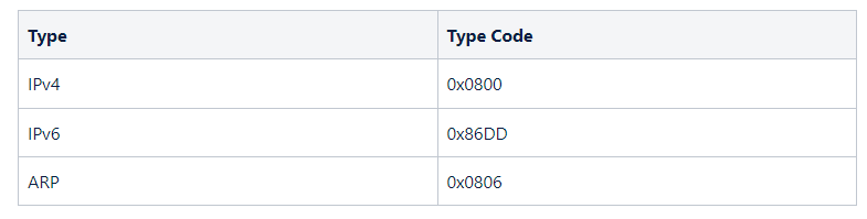 이더넷 헤더의 타입(타입 코드는 상위 계층의 프로토콜 종류를 구분해주는 역할)