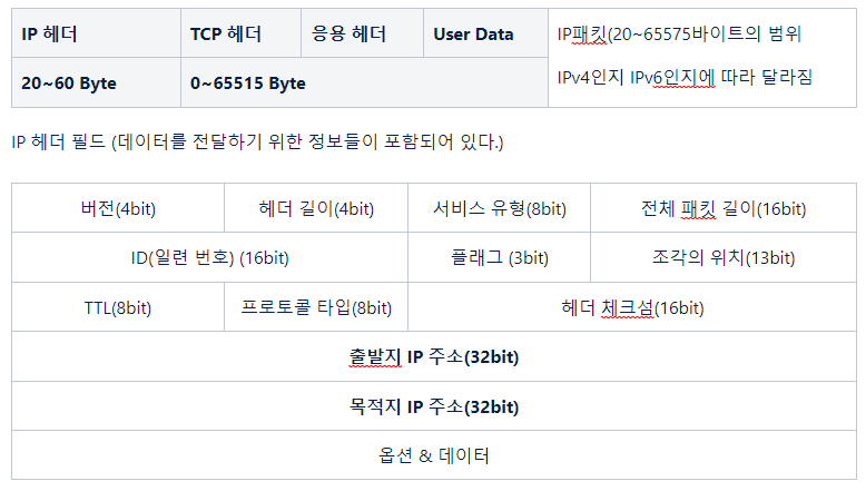 IP 패킷: IP헤더가 캡슐화 되었을 때 칭해지는 프로토콜 데이터 단위