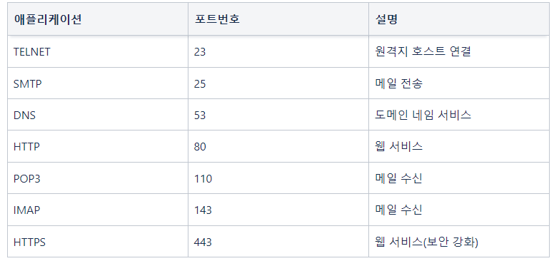Well - Know 포트 (0~1023) 국제 인터넷 주소 관리 기구에서 지정