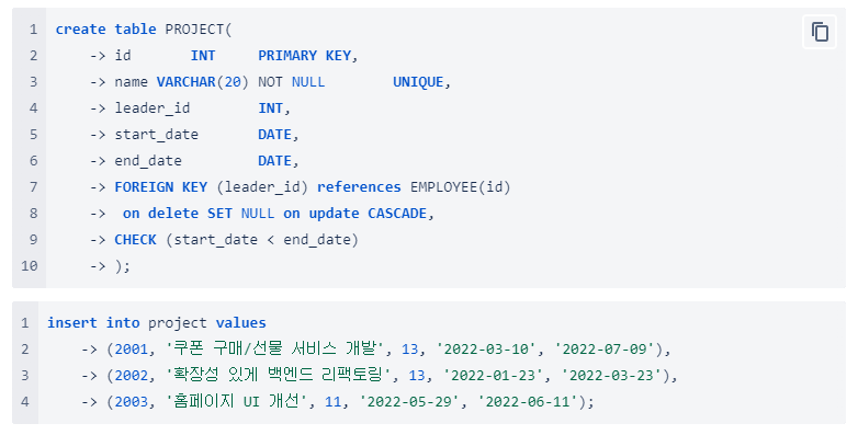 ERROR 3819 (HY000): Check constraint 'employee_chk_2'is violated //salay가 50000000이하로 에러