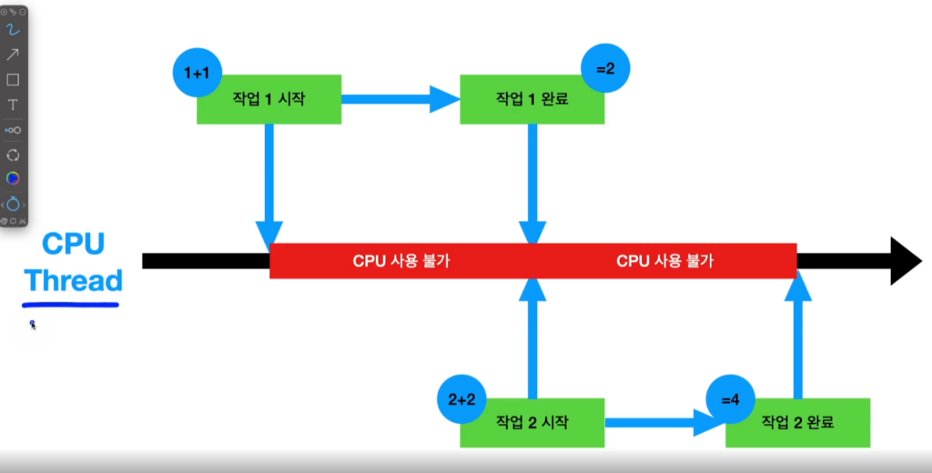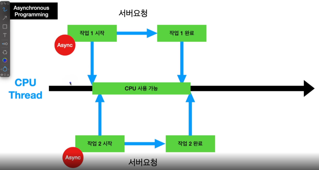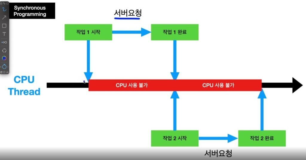 Synchronous Programming서버 응답이 올 때까지 CPU 사용 불가
